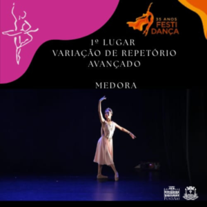 Com apresentações no último final de semana, as bailarinas Letícia Chaves e Larissa Ribeiro garantiram pódio em categorias de variação de repertório feminina. Letícia conquistou o primeiro lugar com a coreografia “Medora” e ainda recebeu indicação como melhor bailarina do festival. Já Larissa obteve o terceiro lugar com “La Esmeralda”. Além disso, o grupo apresentou o conjunto “Fairy Doll”, que rendeu o segundo lugar, e a coreografia “Nada além de nós”, interpretada por Letícia e Luana Chaves, que conquistou a terceira colocação no ballet de criação.