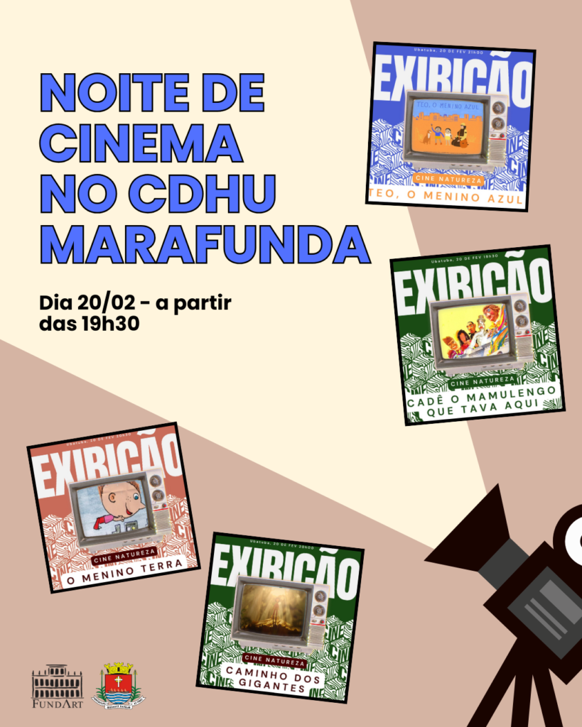 Quatro curtas-metragens voltados para o público infantil, com temáticas sobre meio ambiente, cultura e imaginação, serão exibidos nesta quinta-feira, dia 20, no CDHU Marafunda. A iniciativa, promovida pelo projeto Cine Natureza, começará às 19h30 com o curta “Cadê o Mamulengo que tava aqui?”, seguido pelos filmes “Caminho dos Gigantes”, “O Menino Terra” e “Teo, o Menino Azul”.