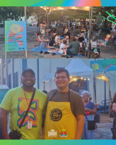 Na música, o DJ Pedro Loiola animou a praça com o set “Ondas Sonoras”, misturando ritmos contemporâneos e influências afro-diaspóricas. A literatura também teve espaço com a mediação “Ler mudou, muda e continuará mudando o mundo”, conduzida pelas BrincaManas, que encantaram crianças e adultos.
