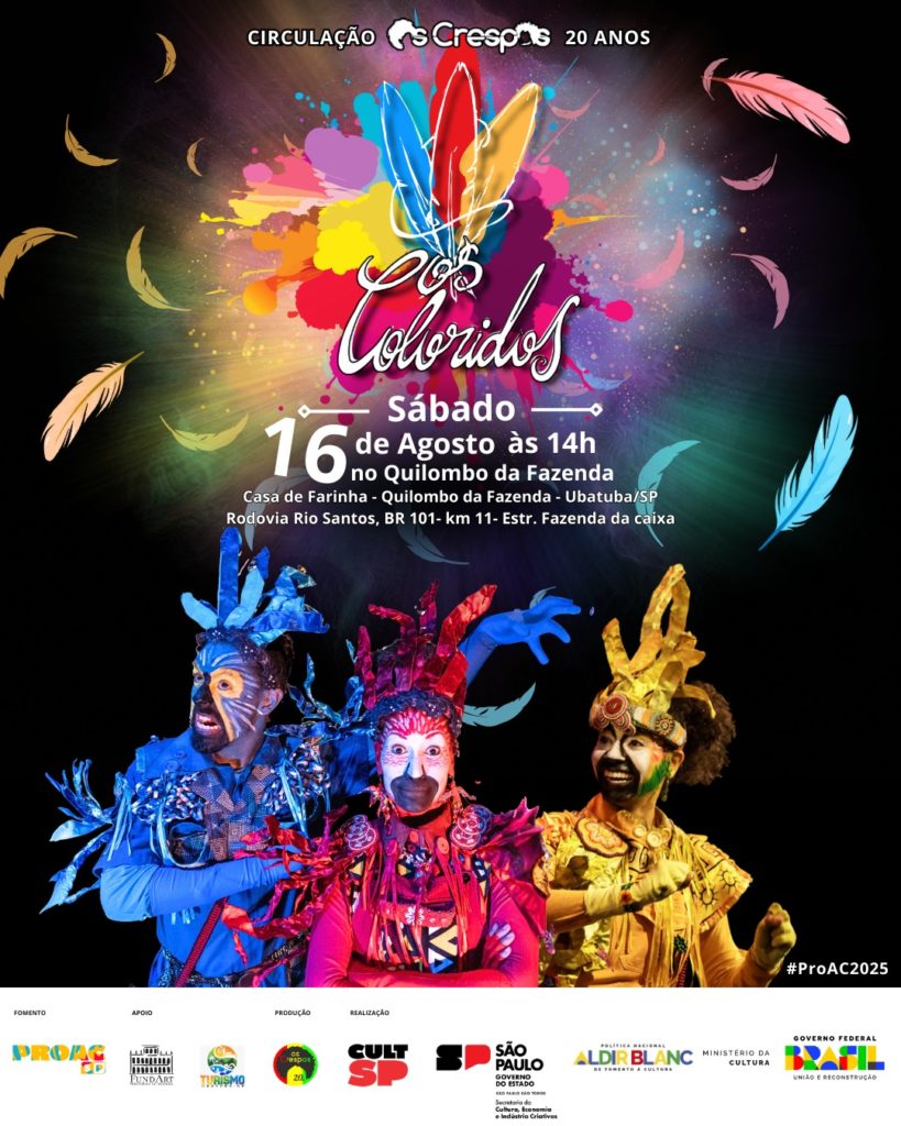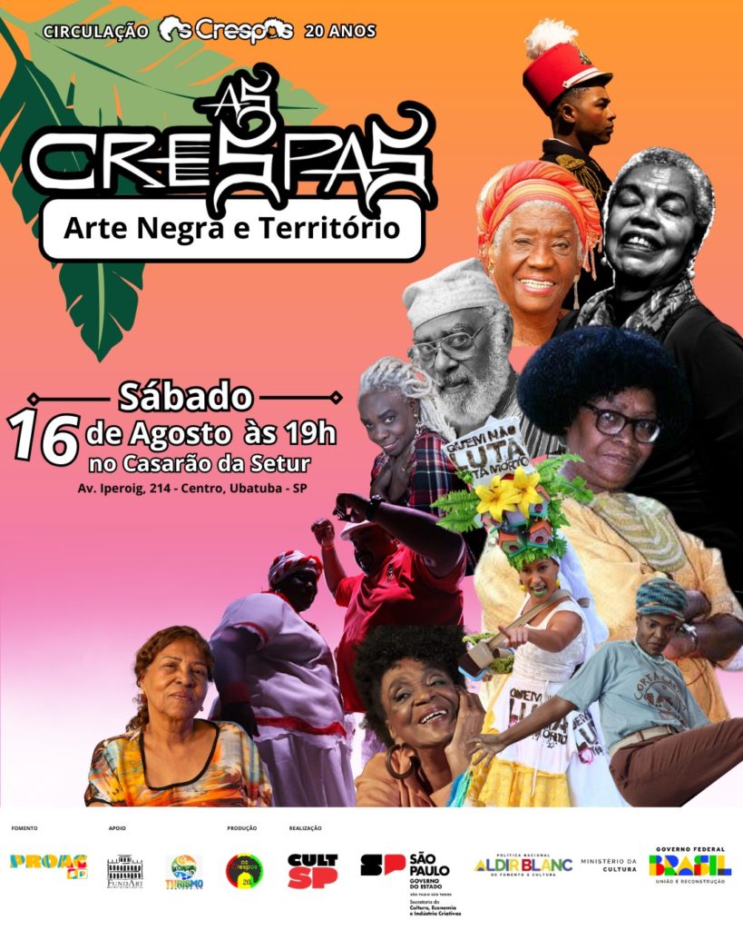 Neste sábado, 16 de agosto, Ubatuba receberá duas apresentações teatrais e uma roda de conversa gratuitas, realizadas pela Companhia “Os Crespos” em comemoração aos 20 anos do grupo. As atividades fazem parte de uma circulação estadual que passará por seis cidades de São Paulo até outubro.
