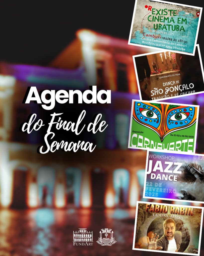 Nesta sexta-feira, dia 21, o público poderá prestigiar a 2ª Mostra Itinerante (R)Existe Cinema em Ubatuba, no Camburi, e a abertura da Exposição “Carnavarte”, que reunirá obras de diversas linguagens, como pintura, fotografia, gravura e técnicas mistas, todas inspiradas no carnaval. Além disso, haverá o lançamento do documentário “Dança de São Gonçalo: tradição e fé caiçara”, uma oportunidade de mergulhar nas tradições caiçaras da cidade. Já no sábado, a agenda seguirá com a Feira de Empreendedorismo Solidário do Ipiranguinha, o Workshop de Jazz Dance e o stand-up de Fábio Rabin.