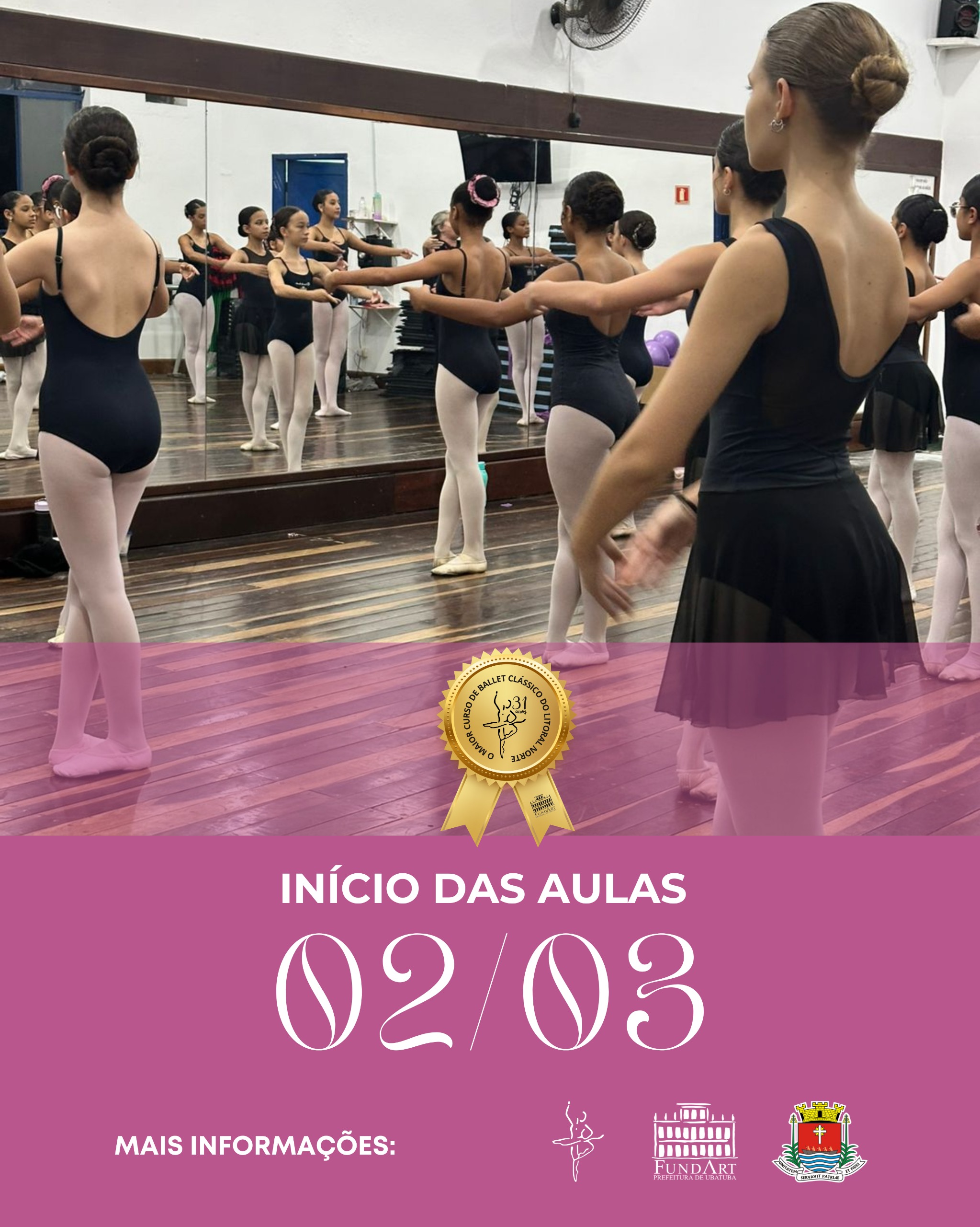 Ainda dá tempo de garantir a sua vaga na Oficina de Dança – Ballet da Fundação de Arte e Cultura de Ubatuba (Fundart). Nesta etapa final das inscrições, que começaram no dia 9 de fevereiro e vão até 9 de março, o horário de atendimento foi alterado, e as matrículas agora devem ser realizadas das 9h às 13h – e não mais até as 16h30.
