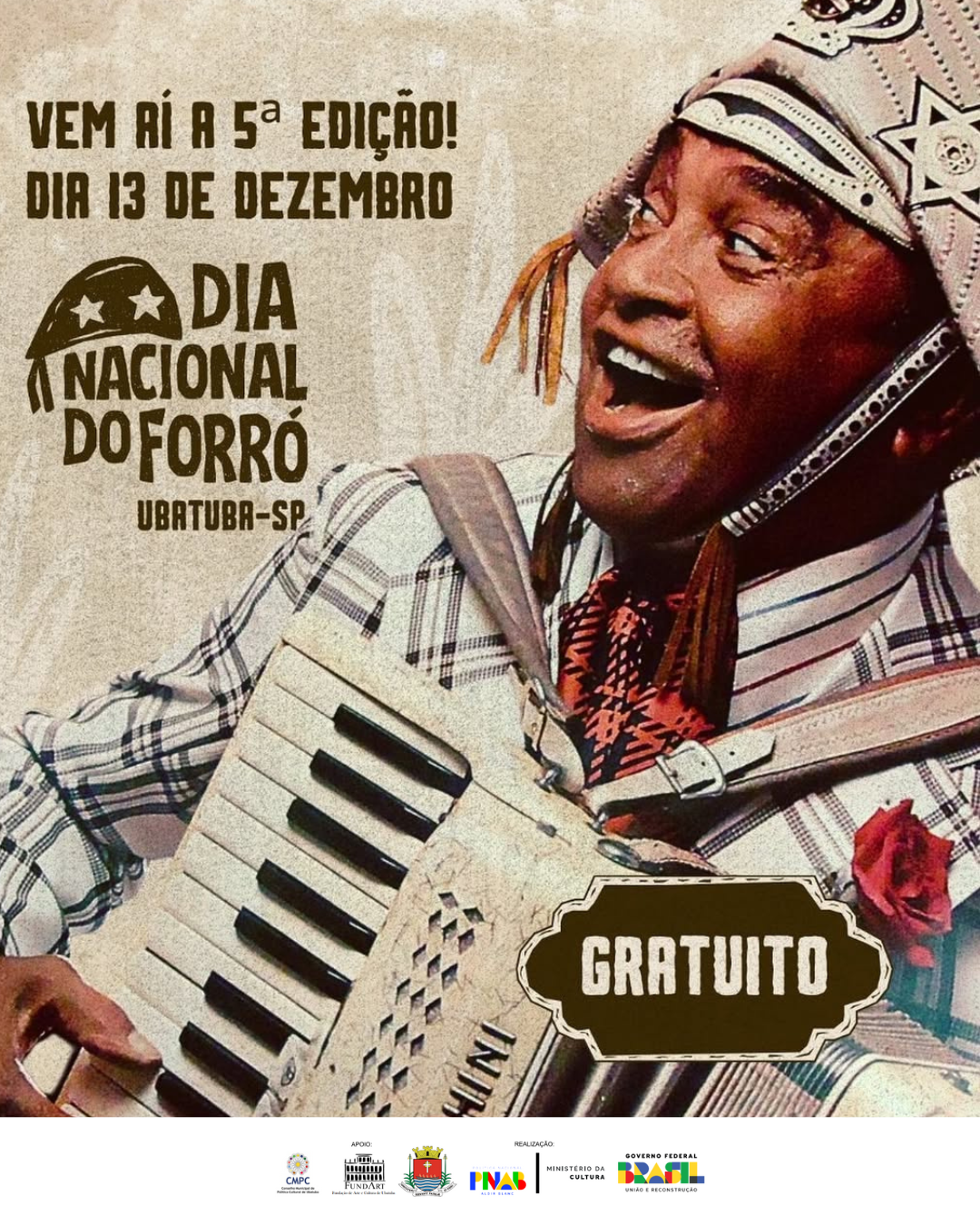 Moradores e visitantes de Ubatuba poderão participar gratuitamente de uma celebração dedicada ao forró, com aula de dança e apresentações musicais. A atividade faz parte da quinta edição do “Dia Nacional do Forró”, evento que ocorrerá em 13 de dezembro, no antigo casarão da praia do Perequê-Açu. Neste ano, a iniciativa foi contemplada com recursos da Política Nacional Aldir Blanc (PNAB), por meio da Fundação de Arte e Cultura de Ubatuba (Fundart).
