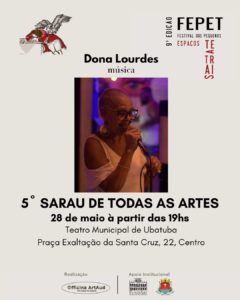 O Teatro Municipal Pedro Paulo Teixeira Pinto recebe, no dia 28 de maio, a apresentação musical de Dona Lourdes, como parte da programação do 5º Sarau de Todas as Artes. O evento tem início às 19h e integra as ações de valorização da cultura popular e dos artistas locais.