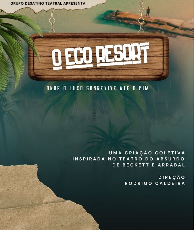 Inspirada livremente nas obras de Samuel Beckett e Fernando Arrabal, a montagem parte da estética do Teatro do Absurdo para discutir questões socioambientais por meio de uma narrativa ambientada em um luxuoso resort do futuro. No espaço, idealizado como refúgio para grandes fortunas em um paraíso preservado, surgem estranhezas que colocam em dúvida a natureza ao redor e despertam rumores sobre um acontecimento capaz de transformar o destino dos presentes.