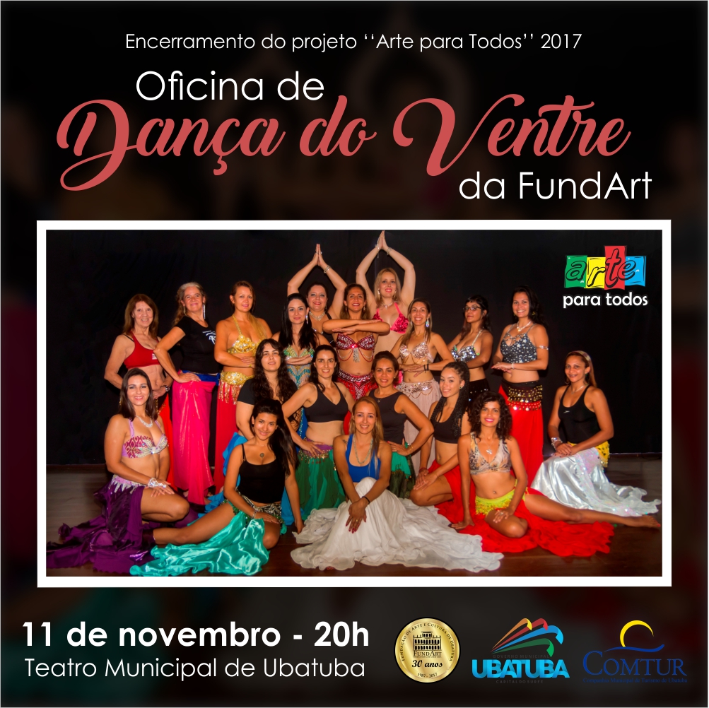 Neste sábado (11), a partir das 20h, o Teatro Municipal de Ubatuba recebe as atividades da Oficina de Dança do Ventre da FundArt. O trabalho apresentado será resultado das aulas práticas e teóricas que ocorreram durante a execução da oficina cultural ministrada pela arte-educadora Aline Pilz.
