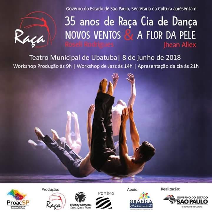 Em comemoração aos seus 35 anos, a Raça Cia de Dança, através da Secretaria da Cultura do Estado de São Paulo, apresenta duas obras de seu repertório no Teatro Municipal, nesta sexta-feira, às 21h. A primeira é a coreografia “A Flor da Pele”, de Jhean Allex, atual diretor artístico da companhia. Em seguida, irão apresentar “Novos Ventos”, uma das coreografias mais consagradas da Cia, criada por Roseli Rodrigues, fundadora da Raça Cia de Dança.