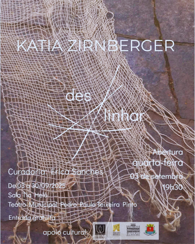 A mostra da artista Katia Zirnberger, que conta com o apoio da Fundação de Arte e Cultura de Ubatuba (Fundart), reunirá obras que exploram principalmente a linguagem têxtil, mas também estabelecem diálogos com outras formas de expressão artística. Entre os trabalhos expostos, estará o trio de esculturas têxteis selecionado para a III Trienal de Tapeçaria do Museu de Arte Moderna de São Paulo, em 1982. A curadoria, feita por Erica Sanches, organizou as peças de forma a permitir ao visitante transitar por diferentes planos, espaços e camadas.