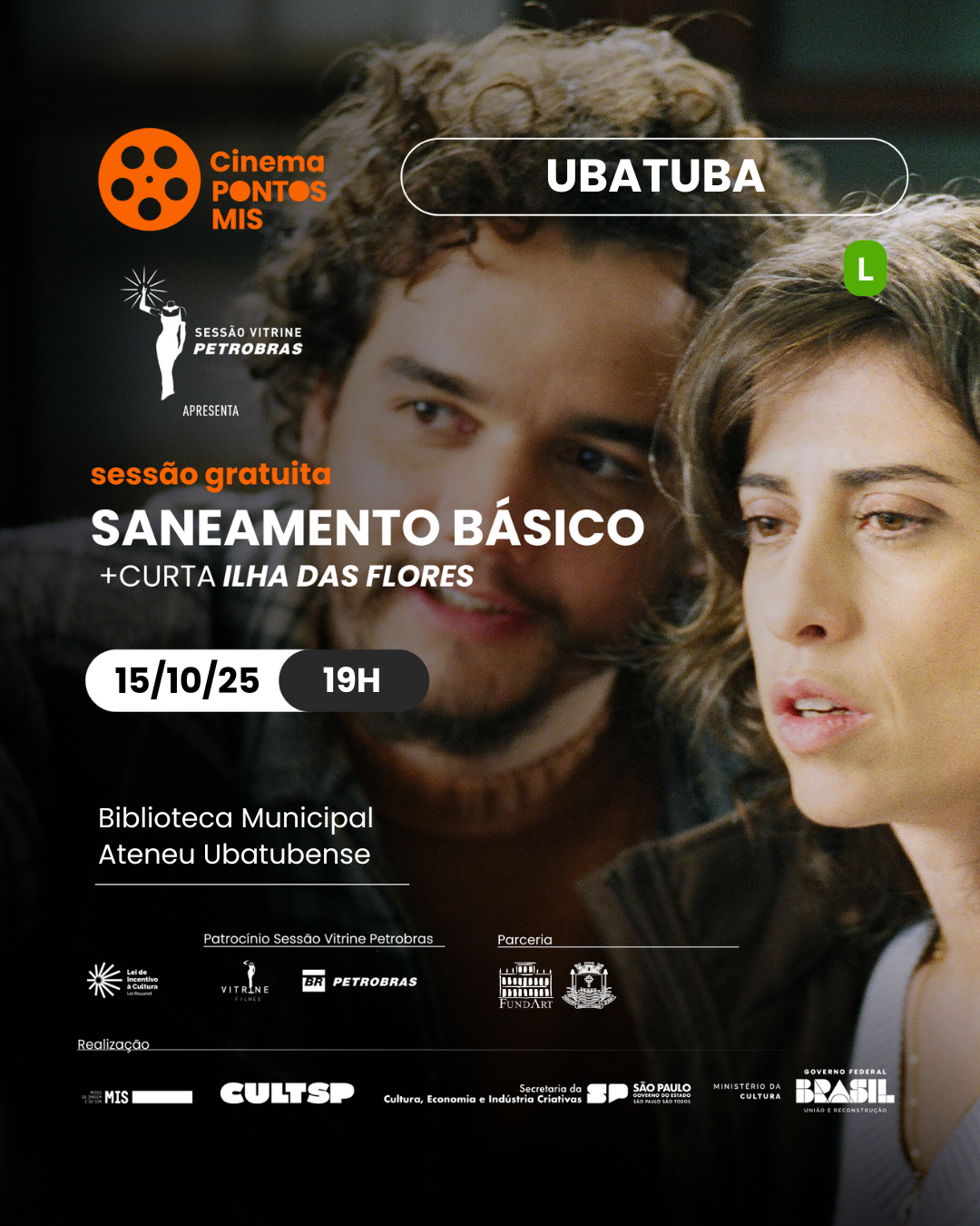 A exibição começará às 19h e não requer inscrição prévia. “Saneamento Básico” (Brasil, 2007 / Relançamento 2025), dirigido por Jorge Furtado, tem duração de 1h52 e classificação indicativa de 12 anos. O longa retrata moradores de uma vila que decidem produzir um filme para obter recursos destinados à construção de uma estação de tratamento de esgoto. Em seguida, será exibido o curta “Ilha das Flores” (Brasil, 1989 / Restauração 4K – 2025), também dirigido por Furtado, com 15 minutos de duração e classificação de 10 anos, que acompanha o percurso de um tomate até o destino final do lixo, propondo uma reflexão sobre consumo e desigualdade.