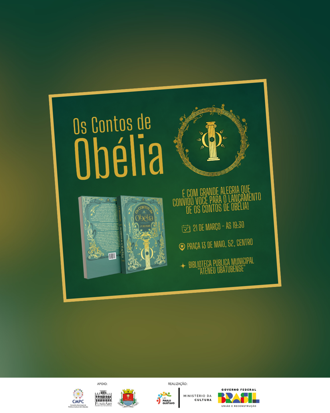 A Biblioteca Municipal Ateneu Ubatubense sediará, nesta sexta-feira, dia 21 de março, às 19h30, o lançamento do livro “Os Contos de Obélia”, do escritor João Victor Melchiades. O evento será gratuito e aberto ao público, oferecendo a oportunidade de conhecer mais sobre a obra, que mistura fantasia, mitologia e reflexões sobre adoção e esperança.