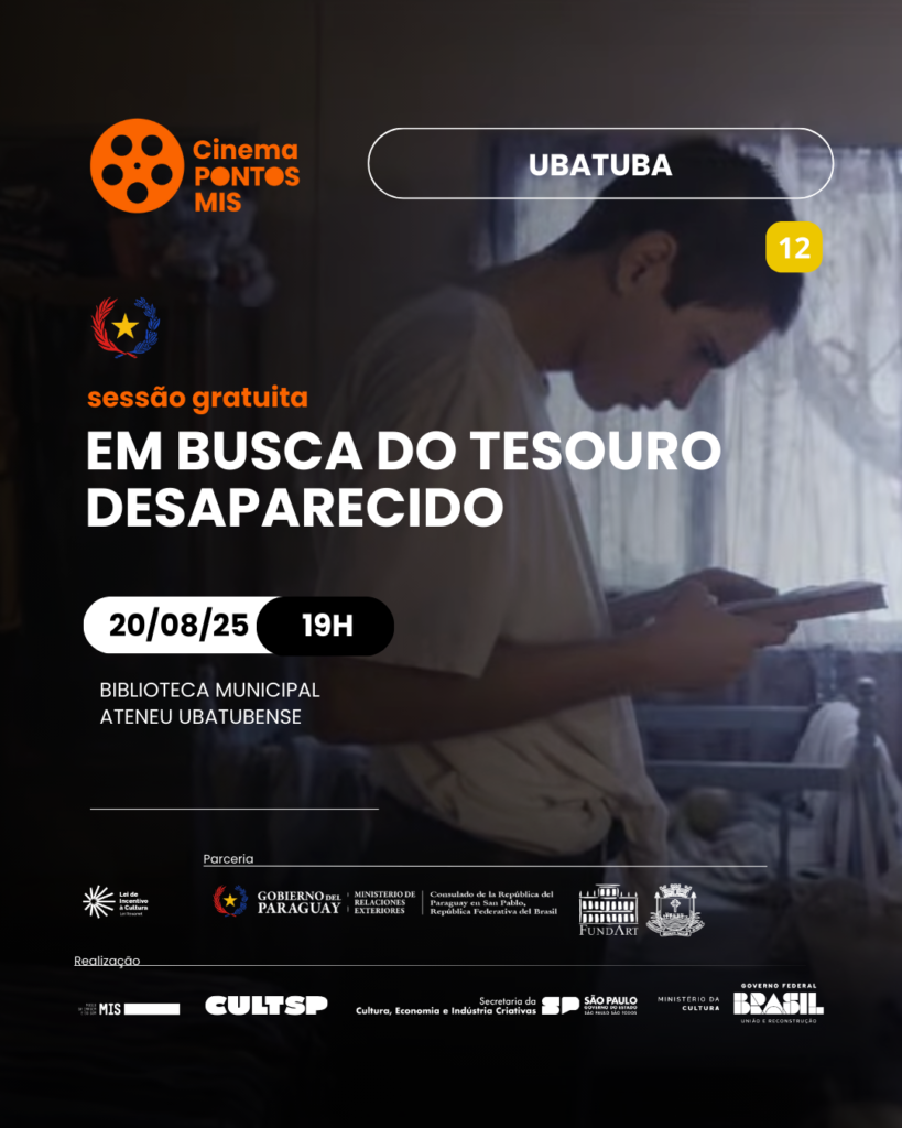 O cinema paraguaio chegará à Biblioteca Municipal Ateneu Ubatubense nesta quarta-feira, 20 de agosto, com a exibição do longa “Em Busca do Tesouro Desaparecido” (Los Buscadores), dirigido por Juan Carlos Maneglia e Tana Schembori. O filme, que tem classificação para 12 anos, acompanha a trajetória de Manu, jovem que encontra um mapa dentro de um livro de história e parte, junto a dois amigos, em busca de um tesouro enterrado desde a Guerra da Tríplice Aliança.