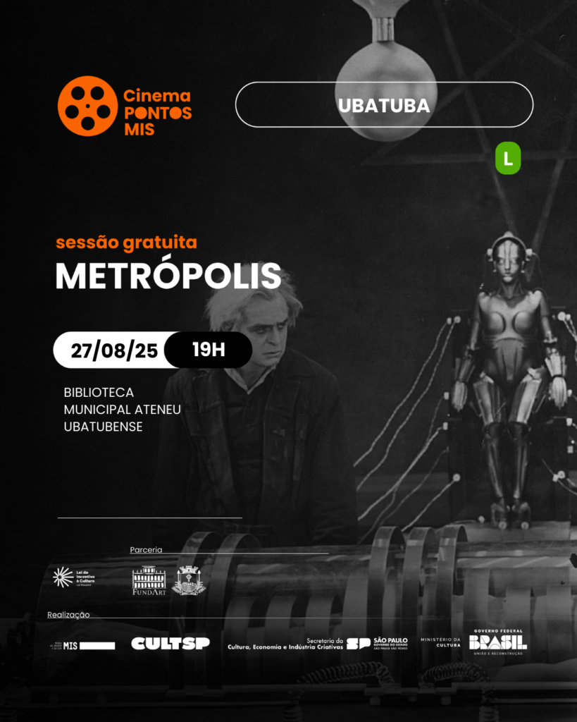 Durante o mês de agosto, o programa Pontos MIS já promoveu a exibição dos títulos: “Laerte-se”, “Minhocas” e “Em Busca do Tesouro Desaparecido”. Agora, será a vez do longa dirigido por Fritz Lang, lançado em 1927, que retrata uma sociedade futurista dividida entre a elite e os trabalhadores e tem classificação livre.