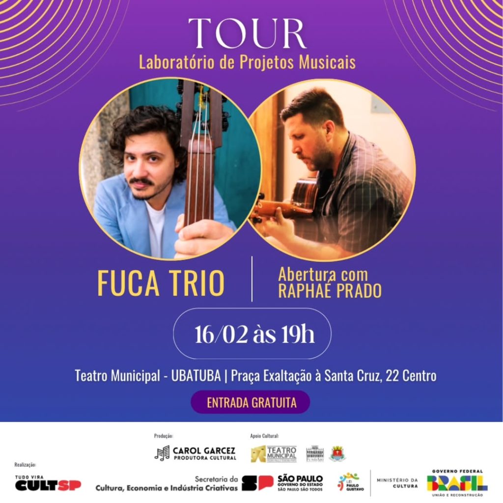 No domingo, 16 de fevereiro, às 19h, o evento começará com o show de Raphaé Prado, “Voz e Violão”, em uma performance solo do instrumento com obras de compositores brasileiros como Dilermando Reis e Baden Powell. Em seguida, o grupo Fuca Trio, formado por contrabaixo, piano e bateria, apresentará “Auto-retrato em 3 cores”, uma mistura de jazz, fusion, rock e música brasileira, com composições próprias.